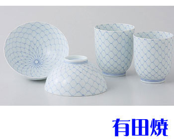 有田焼 光琳内外網 夫婦茶碗+夫婦湯飲みのセット