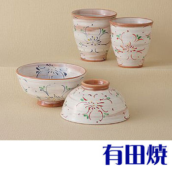 有田焼 粉引花絵 夫婦セット 夫婦茶碗+夫婦湯飲みのセット 睦揃え