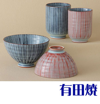 有田焼 古代千筋 夫婦セット 夫婦茶碗+夫婦湯飲みのセット 睦揃え