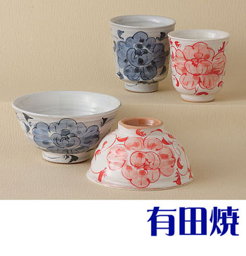 有田焼 染付牡丹唐草 夫婦セット 夫婦茶碗+夫婦湯飲みのセット 睦揃え