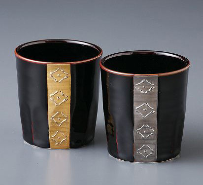 結婚祝いのプレゼントにどうぞ♪ 有田焼 金銀ライン ロックカップペア
