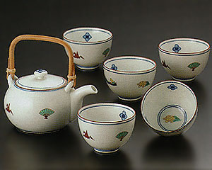 日本トップクラスの陶磁器、有田焼の茶器セットです。末広がりの扇や鶴など縁起の良い絵柄を専門の職人が丁寧に仕上げました☆還暦祝いなどのお祝い事にぴったりです♪