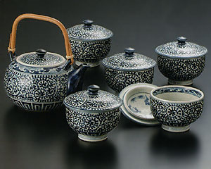 日本トップクラスの陶磁器、有田焼の茶器セットです。有田焼独特の蛸唐紋が歴史を感じさせる逸品です☆湯のみのフタの裏にまで凝った絵付けがされています♪