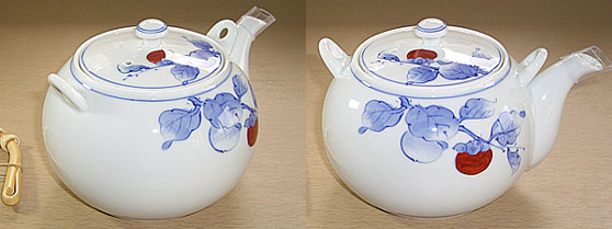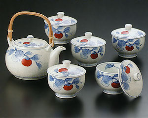 日本トップクラスの陶磁器、有田焼の茶器セットです。鮮やかな柿絵がお部屋を明るく演出します☆湯飲みの内側にも細かい絵付けがされています♪