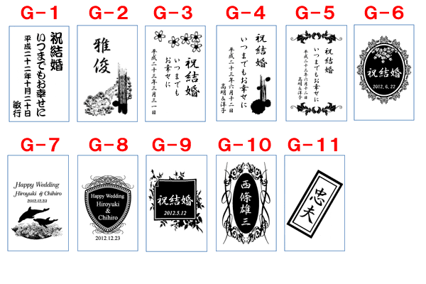 11種類のデザインの見本からお好きな文字入れパターンが選べます。 |