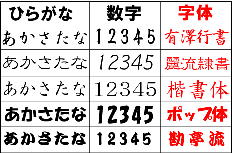 字体(フォント)の指定を希望される場合は、具体的な文字の字体(フォント名)を連絡事項記入欄にご記入ください。指定が無い場合は当店で指定いたします。 |