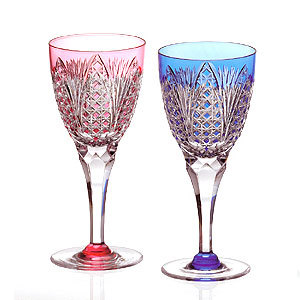 カガミクリスタル 江戸切子 ペアワイングラス笹っ葉に四角籠目 紋