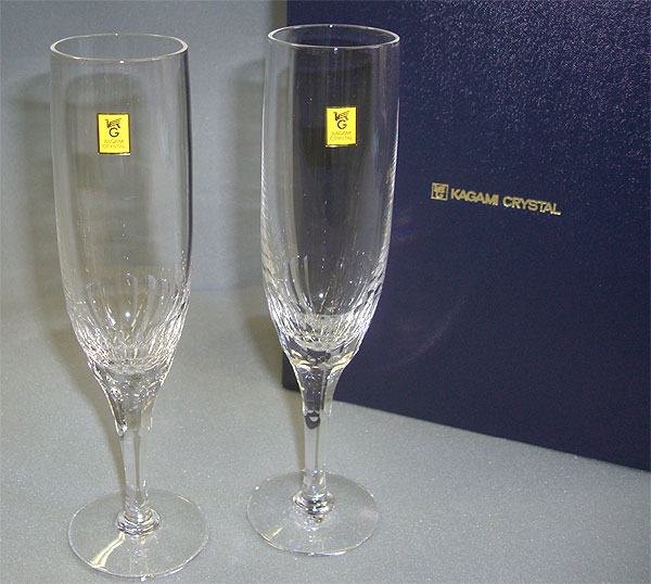 | 日本最高級のクリスタルガラスメーカー カガミクリスタルの作品です。こちらのグラスで飲むシャンパンは格別です! |