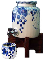 | 有田焼 焼酎サーバー 古染ぶどう 2.3L(丸型) お得セット(カップ・木台付) |