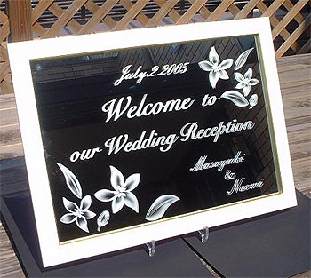 披露宴でゲストをお迎えする人気の高いミラーウェルカムボード♪真新しいミラーボードに専門の職人が手間暇かけて一つ一つ丁寧に彫刻をしていきます☆挙式後、家に持って帰ればいつでも幸せな気持ちを思い出せます♪