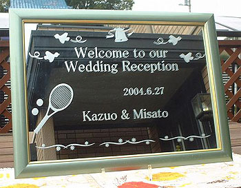 披露宴でゲストをお迎えする人気の高いミラーウェルカムボード♪ 真新しいミラーボードに専門の職人が手間暇かけて一つ一つ丁寧に彫刻をしていきます☆挙式後、家に持って帰ればいつでも幸せな気持ちを思い出せます♪
