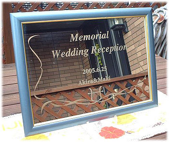 披露宴でゲストをお迎えする人気の高いミラーウェルカムボード♪ 真新しいミラーボードに専門の職人が手間暇かけて一つ一つ丁寧に彫刻をしていきます☆挙式後、家に持って帰ればいつでも幸せな気持ちを思い出せます♪